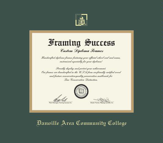Danville Area Community College Diploma Frame with Green and Gold Double Mat and Gold Embossing