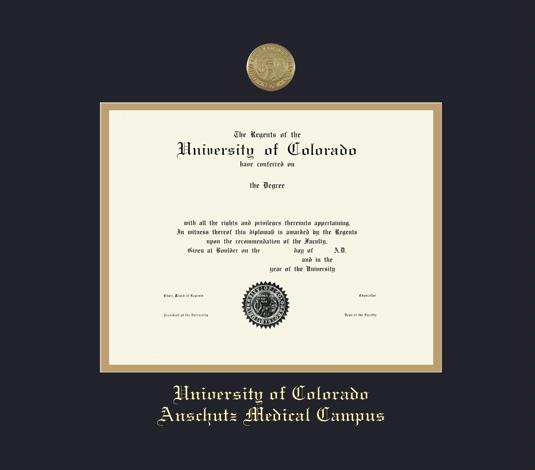 University of Colorado at Anschutz Medical Campus Diploma - BA/MA/PhD/Doc of Philosophy Frame with Medallion and Black and Gold Double Mat and Gold Embossing