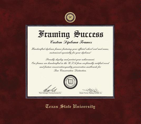Texas State University Diploma (11/18 to Present) Frame with Medallion and Maroon Suede and Wood Fillet Double Mat and Gold Embossing