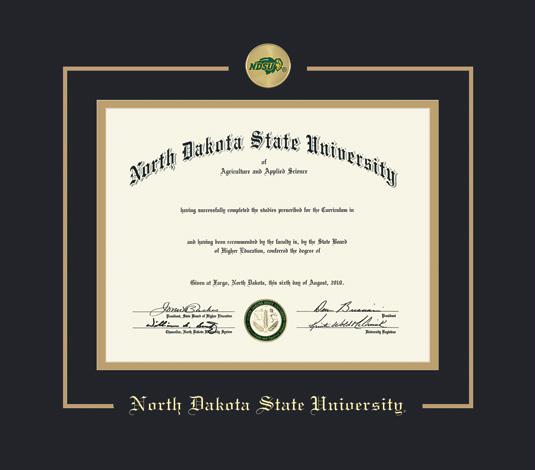 North Dakota State University Diploma Frame with Wordmark Medallion and Black and Gold Double Mat and Gold Embossing