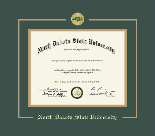 North Dakota State University Diploma Frame with Wordmark Medallion and Green and Gold Double Mat and Gold Embossing