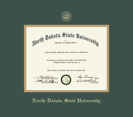 North Dakota State University Diploma Frame with Green and Gold Double Mat and Gold Embossing