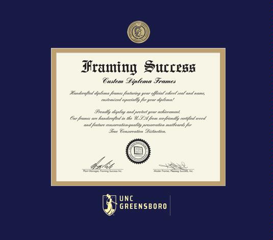 University of North Carolina at Greensboro Diploma - BA (2019 to Present) Frame with Colored Medallion and Navy Blue and Gold Double Mat and Gold Embossing