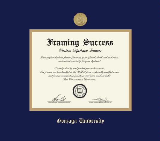 Gonzaga University Diploma - PhD (2019 to Present) Frame with Medallion and Navy Blue and Gold Double Mat and Gold Embossing