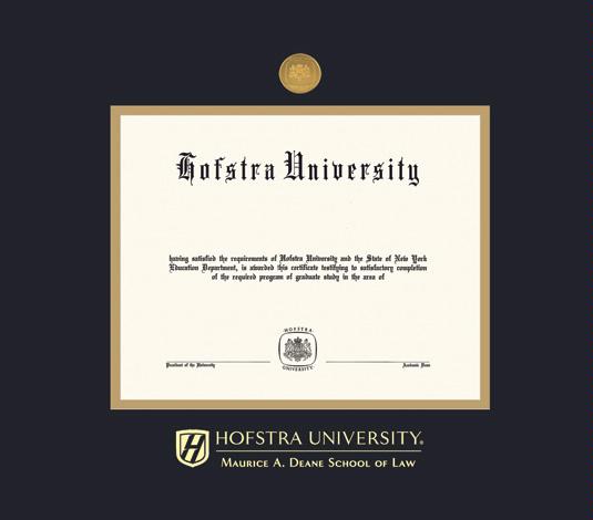 Hofstra University Diploma - Law (2019 to Present) Frame with Medallion and Black and Gold Double Mat and Gold Embossing