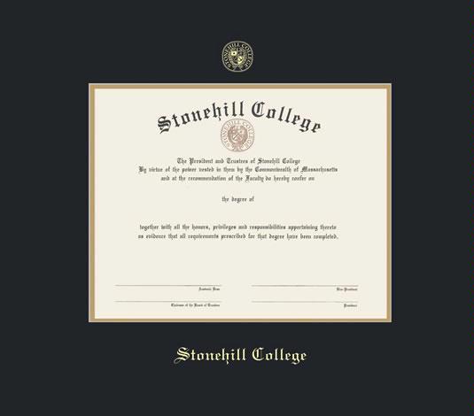 Stonehill College Diploma Frame with Black and Gold Double Mat and Gold Embossing