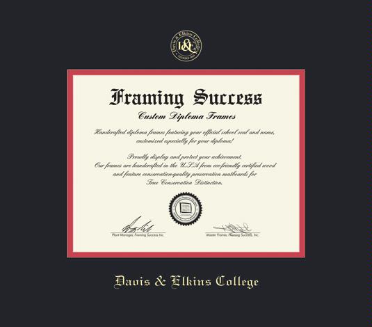 Davis & Elkins College Diploma Frame with Black and Red Double Mat and Gold Embossing