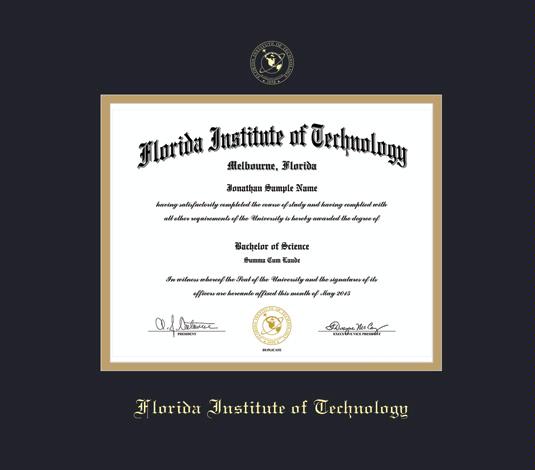 Florida Institute of Technology Diploma - BA/MA (6/19 to Present) Frame with Black and Gold Double Mat and Gold Embossing