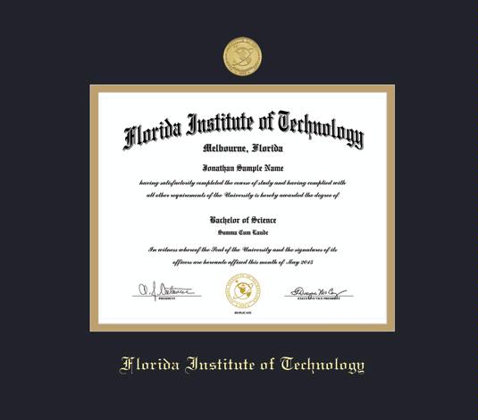 Florida Institute of Technology Diploma - BA/MA (6/19 to Present) Frame with Medallion and Black and Gold Double Mat and Gold Embossing