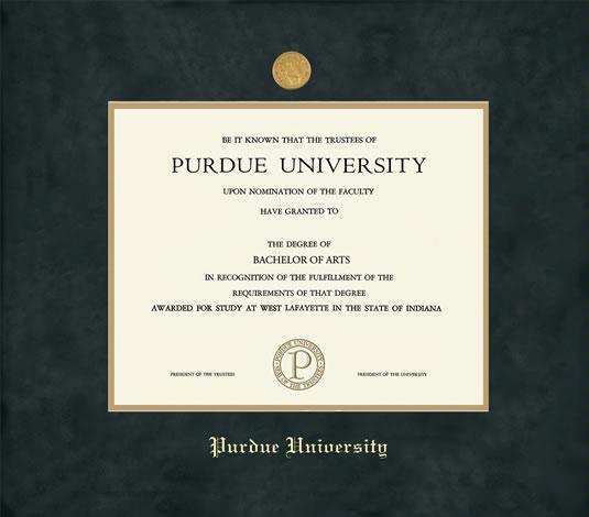 Purdue University Diploma - BA Frame with Medallion and Black Suede and Gold Double Mat and Gold Embossing