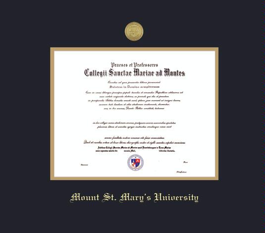 Mount St. Mary's University Diploma - BA (10/19 to Present) Frame with Medallion and Black and Gold Double Mat and Gold Embossing