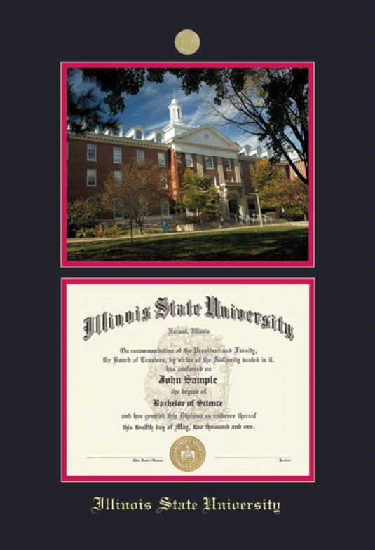 Illinois State University Diploma (2011 to Present) and Photo Frame with Medallion and Black and Red Double Mat and Gold Embossing