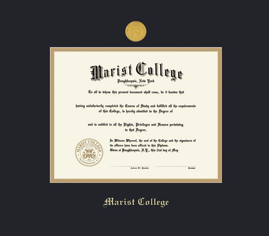 Marist College Diploma - BA (Pre 2025) Frame with Medallion and Black and Gold Double Mat and Gold Embossing