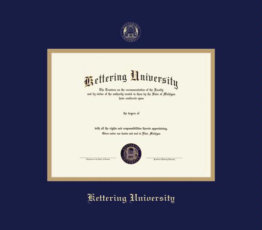 Kettering University Diploma - BA (2017 to Present) Frame with Navy Blue and Gold Double Mat and Gold Embossing