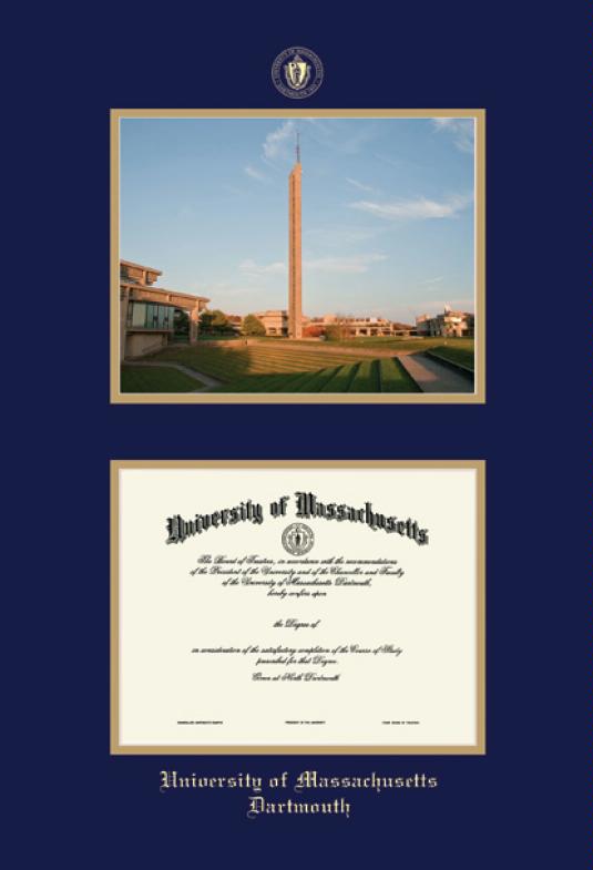 University of Massachusetts- Dartmouth Diploma - BA/MA (2020 to Present) with Photo Frame with Navy Blue and Gold Double Mat and Gold Embossing