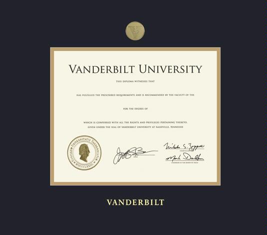 Vanderbilt University Diploma - BA/MA (1/05 to 6/22) Frame with Gold Medallion and Black and Gold Double Mat and Gold Embossing