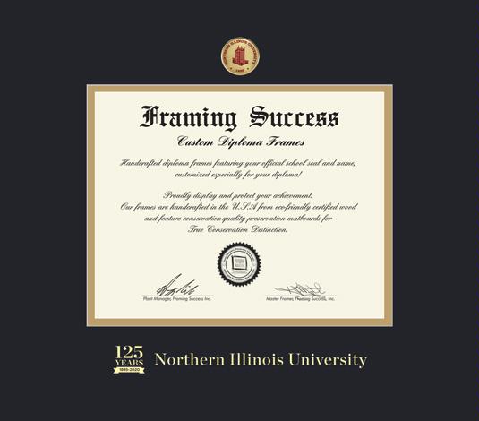 Northern Illinois University Diploma - 125th Anniversary Frame with Medallion and Black and Gold Double Mat and Gold Embossing