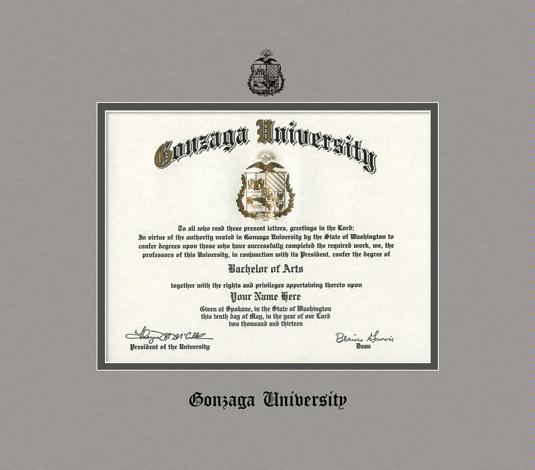 Gonzaga University Diploma - BA/MA (2019 to Present) Frame with Paloma and Moonrock Double Mat and Black Embossing