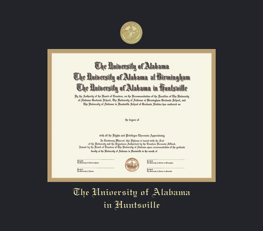 University of Alabama- Huntsville Diploma - BA Frame with Medallion and Black and Gold Double Mat and Gold Embossing