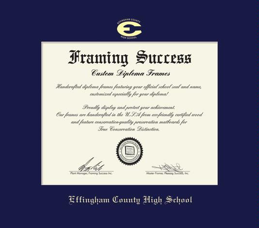 Effingham County High School Diploma Frame with Navy Blue Mat and Gold Embossing