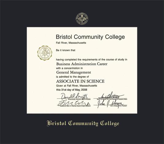 Bristol Community College Diploma (2019 to Present) Frame with Black Mat and Gold Embossing
