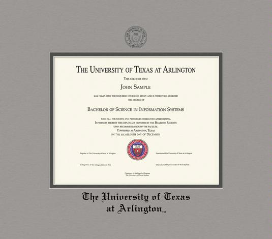 The University of Texas at Arlington Diploma Frame with Paloma and Moonrock Double Mat and Black Embossing