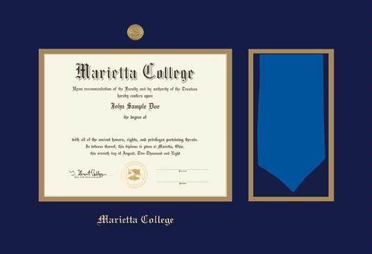 Marietta College BA Diploma with Stole Opening Frame with Medallion and Navy Blue and Gold Double Mat and Gold Embossing