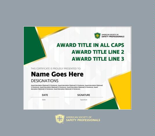 American Society of Safety Professionals Certificate Frame with Gray Mat and Gold Embossing