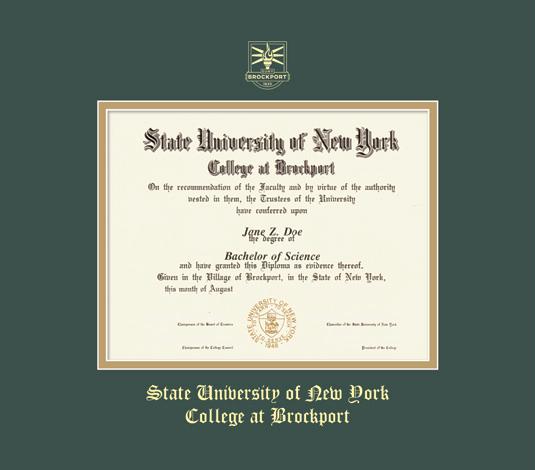 S. U. N. Y. at Brockport Diploma (8/20 to Present) Frame with Green and Gold Double Mat and Gold Embossing