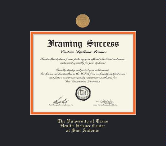 The University of Texas Health Science Center at San Antonio Diploma Frame with Medallion and Black and Burnt Orange Double Mat and Gold Embossing