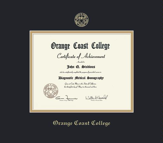 Orange Coast College Diploma Frame with Black and Gold Double Mat and Gold Embossing
