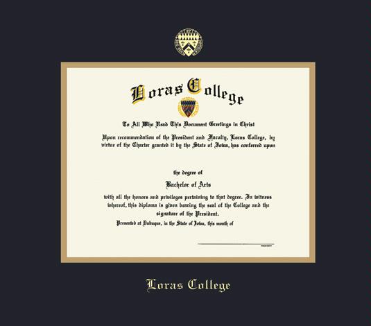 Loras College Diploma Frame with Black and Gold Double Mat and Gold Embossing