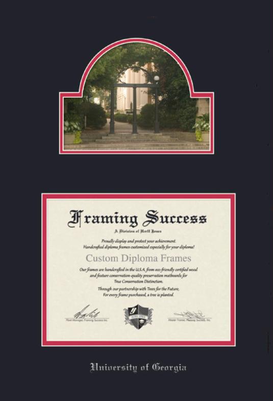 University of Georgia Diploma (9/20 to Present) and Arch Photo Frame with Black and Red Double Mat and Silver Embossing