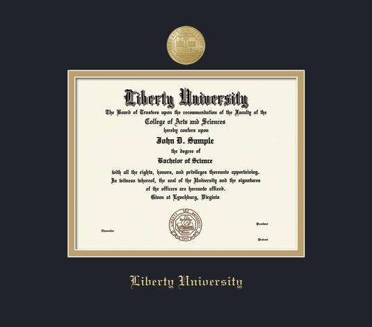 Liberty University Diploma - BA (8/16 to Present) Frame with Gold Medallion and Black and Gold Double Mat and Gold Embossing