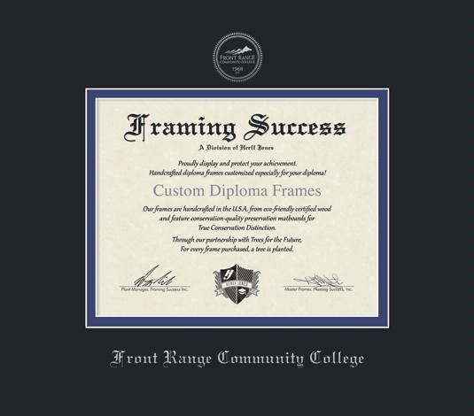Front Range Community College Diploma Frame with Black and Royal Blue Double Mat and Silver Embossing