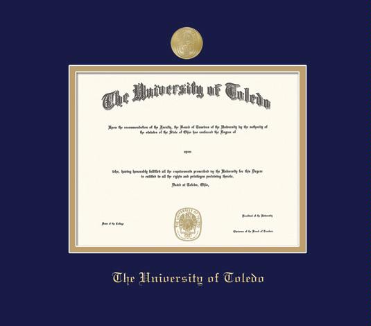 University of Toledo Diploma - BA Frame with Medallion and Navy Blue and Gold Double Mat and Gold Embossing