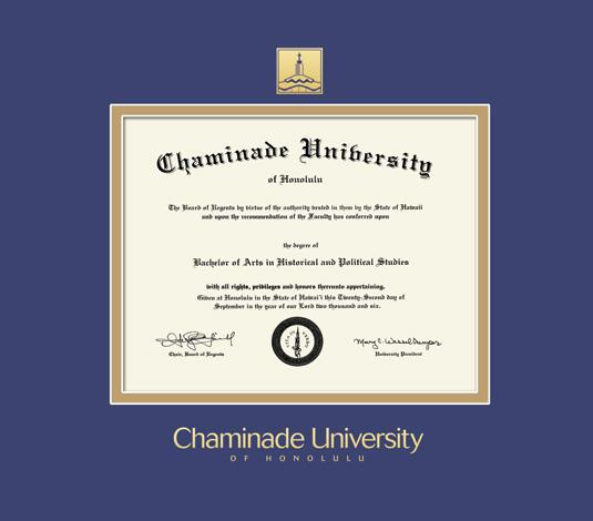 Chaminade University Diploma - BA/MA (Pre 10/25) Frame with Royal Blue and Gold Double Mat and Gold Embossing