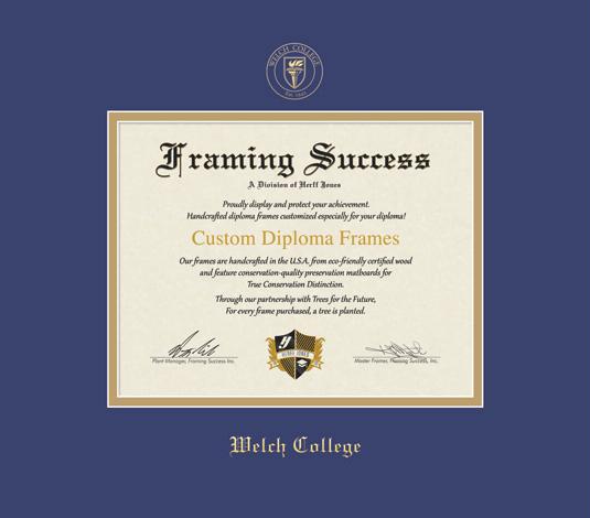 Welch College Diploma - BA Frame with Royal Blue and Gold Double Mat and Gold Embossing