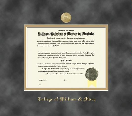 College of William and Mary Diploma (4/2018 to Present) Frame with Medallion and Grey Suede and Gold Double Mat and Gold Embossing