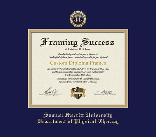 Samuel Merritt University Diploma - Physical Therapy (2021 to Present) Frame with Navy Blue and Gold Double Mat and Gold Embossing