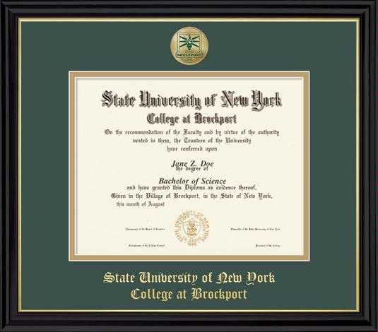 S. U. N. Y. at Brockport Diploma (8/20 to Present) Frame with Colored Medallion and Green and Gold Double Mat and Gold Embossing