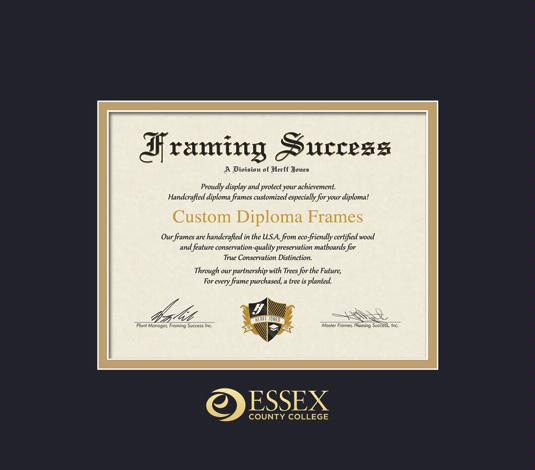 Essex County College Diploma Frame with Black and Gold Double Mat and Gold Embossing