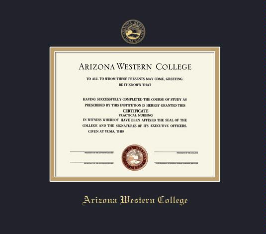 Arizona Western College Diploma (2019 to Present) Frame with Black and Gold Double Mat and Gold Embossing