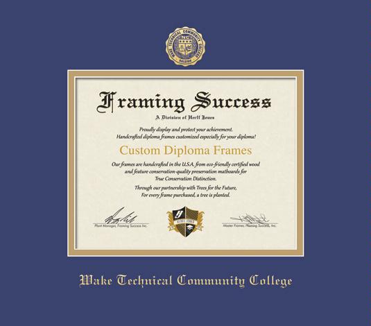 Wake Technical Community College Diploma Frame with Royal Blue and Gold Double Mat and Gold Embossing