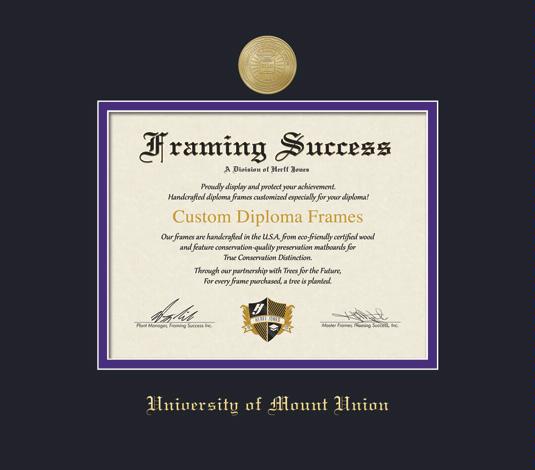 University of Mount Union Diploma Frame with Medallion and Black and Purple Double Mat and Gold Embossing