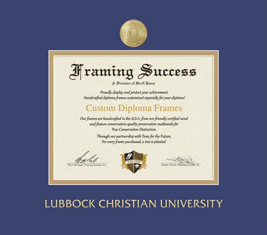 Lubbock Christian University Diploma - MA Frame with Medallion and Royal Blue and Gold Double Mat and Gold Embossing