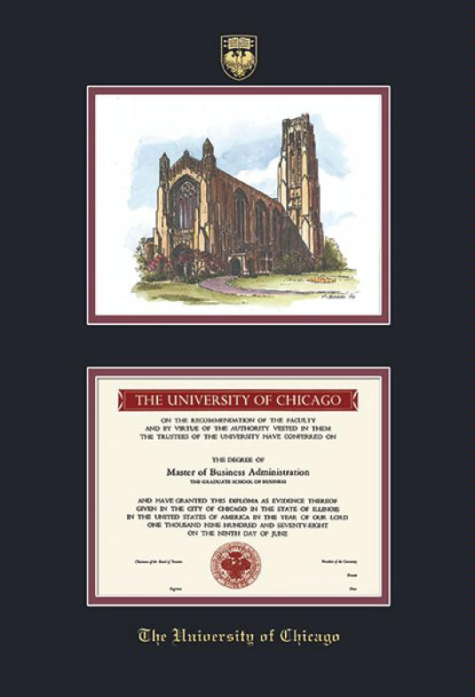 University of Chicago Diploma - BA/MA/PhD (9/21 to Present) and Litho Frame with Black and Maroon Double Mat and Gold Embossing