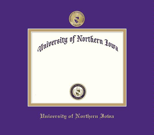 University of Northern Iowa Diploma - MA (11/21 to Present) Frame with Medallion and Purple and Gold Double Mat and Gold Embossing