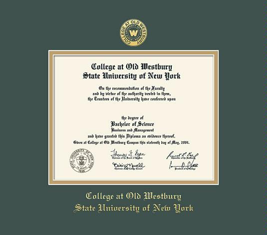 SUNY Old Westbury Diploma (Pre 6/24) Frame with Green and Gold Double Mat and Gold Embossing