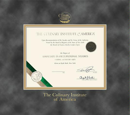 The Culinary Institute of America Diploma (Pre 6/25) Frame with Grey Suede and Gold Double Mat and Gold Embossing